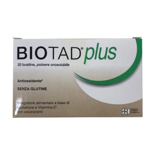 Biotad Plus contiene glutatione ridotto e vitamina E, noti per la loro azione antiossidante nel contrastare lo stress ossidativo e proteggere le cellule.