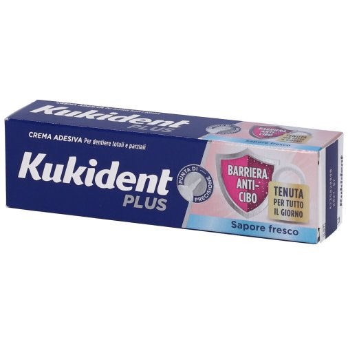 La crema adesiva Kukident Plus Doppia Protezione è disponibile in una confezione da 40 g.Kukident Plus Doppia Protezione: Comfort e Freschezza per la Tua Protesi Dentale