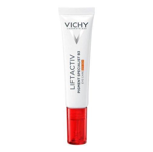 : Il contorno occhi Liftactiv Pigment Specialist B3 agisce su occhiaie e pigmentazione con niacinamide B3, Melasyl, e protezione SPF 50+.